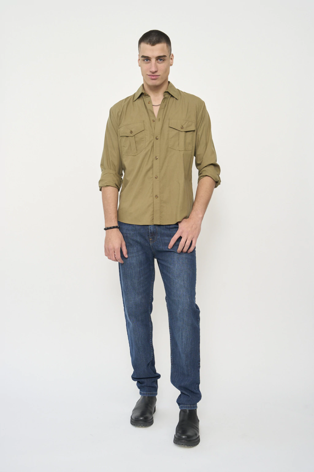Camisa Cozy Verde: una prenda de manga larga con calce relajado que garantiza comodidad durante todo el día. Destaca por su detalle de tabla encontrada en la espalda, aportando un diseño único y moderno.